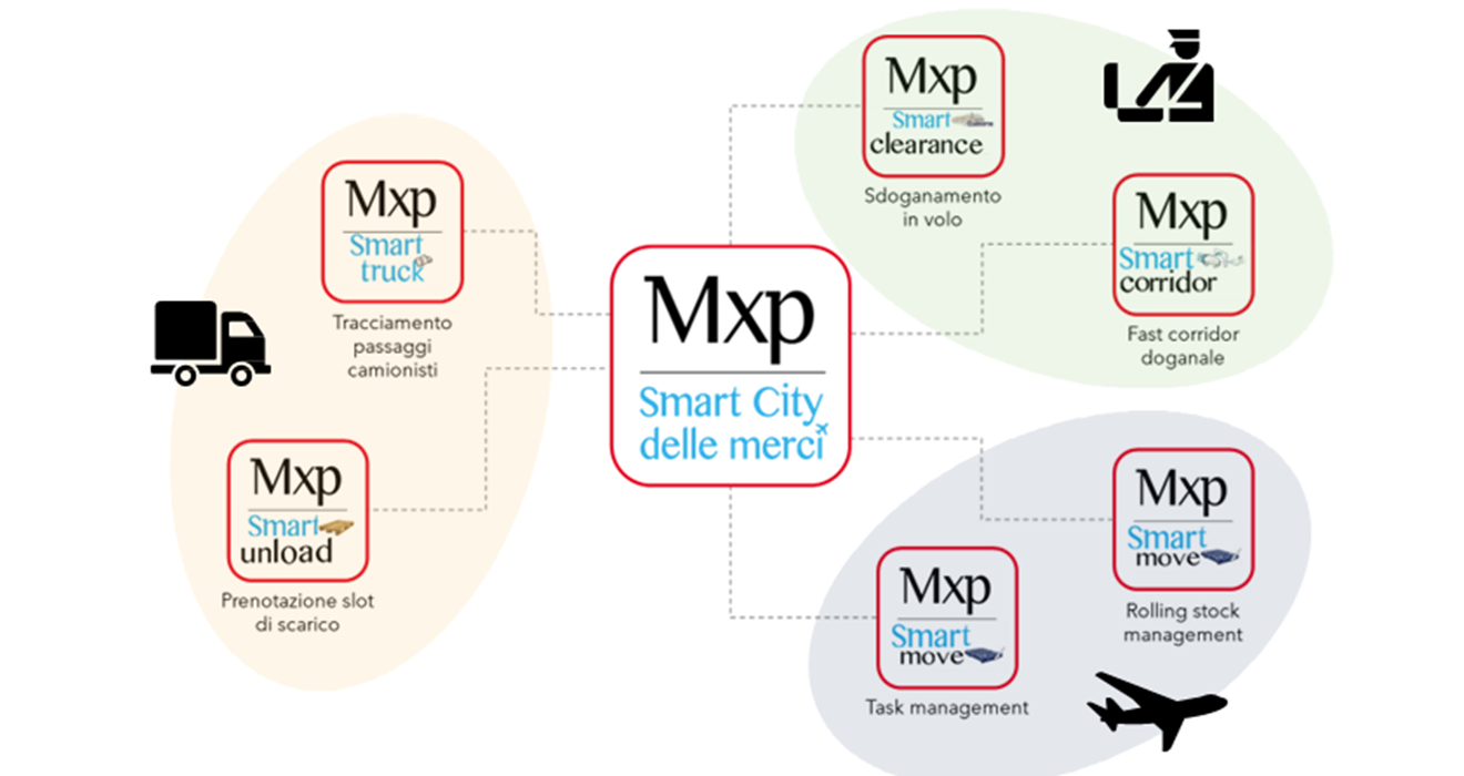 Malpensa Smart City of Goods consists of a network of ICT-based services that allows all the players in the supply chain to use, integrate and share information of their interest in the air cargo treatment cycle departing from Milan Malpensa. The ecosystem is available to all the operators in the air cargo community who directly or indirectly operate at Malpensa airport. They can connect through their own IT systems or by logging in the web portal. The use is completely free of charge.